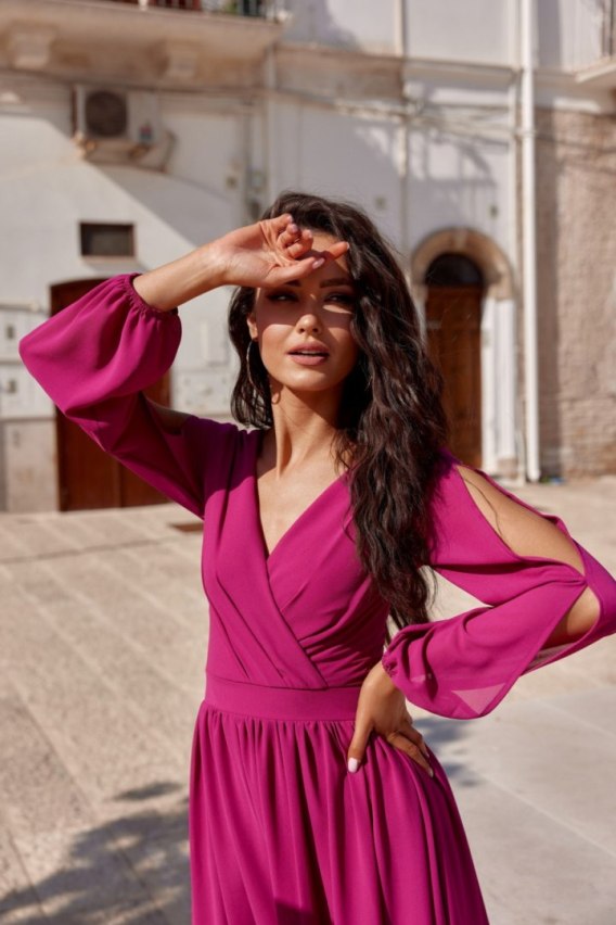 Sivney - sukienka rozkloszowana z kopertowym dekoltem długi rękaw - biskupi